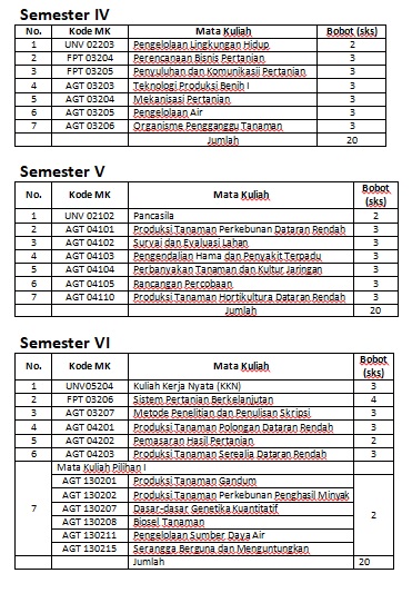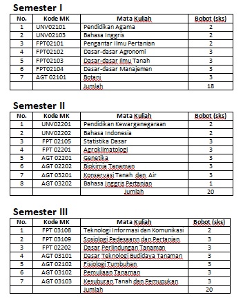 Struktur mata kuliah pada Program Studi Agribisnis dapat dilihat pada tabel berikut.