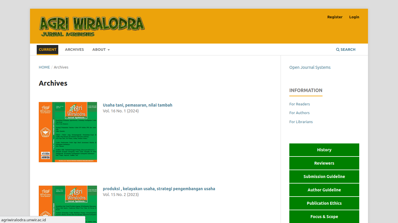 Jurnal Agro Wiralodra dan Agri Wiralodra Faperta Unwir